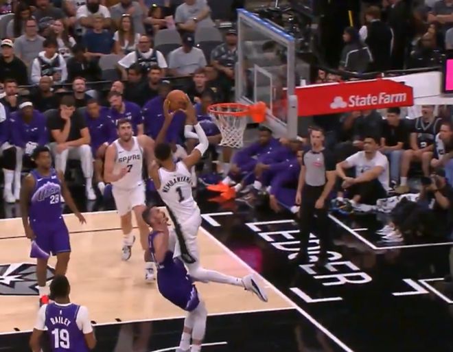 谈到哈珀助攻自己的那记空接暴扣,文班亚马表示:“那次空接暴扣的回合是一个危险的回合,因为当时他的腿部被对手撞了一下,导致自己的身体失去平衡。他向前踉跄了几步,撞到了篮架支柱,很快便稳住了身体,虽然并未受伤,但认为那确实是一次危险的回合。”
