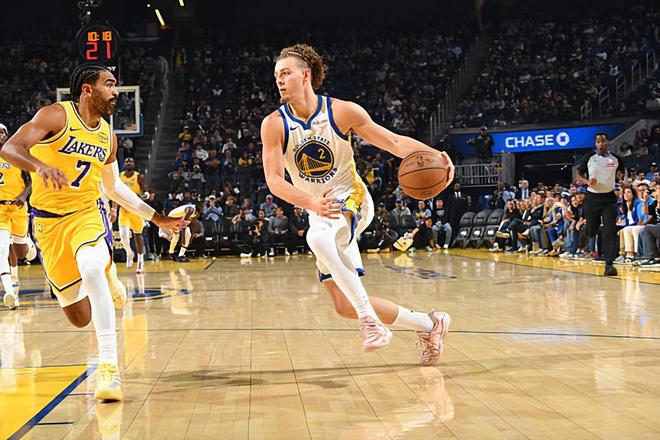 在此前的一场NBA季前赛中,主场作战的洛杉矶湖人以126比116战胜了金州勇士。本场比赛后,湖人取得了季前赛的首场胜利,而勇士则是遭遇了季前赛期间的首场失利。本场比赛后,勇士主教练史蒂夫-科尔(Steve Kerr)接受了记者的采访,他也在采访中谈到了在本场比赛中表现出色的勇士后场新星布兰丁-波杰姆斯基(Brandin Podziemski)。