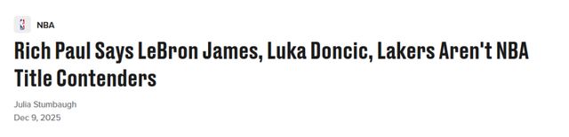 在节目上,保罗表示,他个人并不“认为湖人如今的阵容足以成为争冠球队”。“我觉得他们的配置还够不着西部决赛的门槛,从争冠的角度来讲,他们的硬实力还远远不够。”